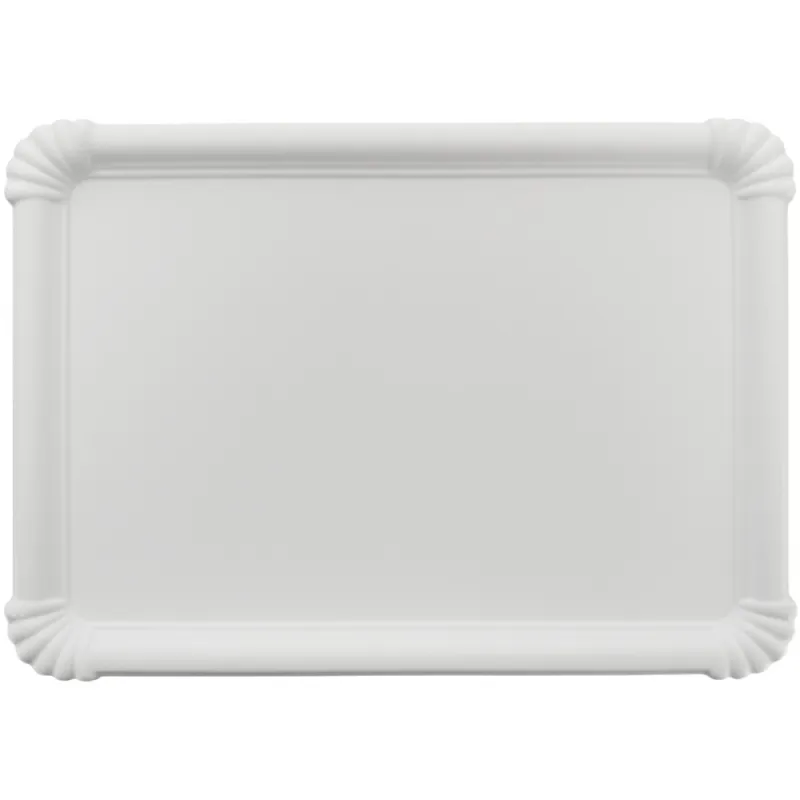 Bandejas de cartón blanco de 25 x 34 cm, fabricadas en cartón de 600gr/m2. Ofrecen una gran resistencia y calidad, lo que las convierte en una opción ideal para panaderías, pastelerías y negocios del sector alimentario. Son perfectas para presentar y transportar repostería, bollería, tartas, pasteles o aperitivos con una presentación cuidada y profesional. Para el uso directo con alimentos, utilizar blonda o papel alimentario. Disponibles en paquetes de 50 unidades o en cajas de 300 unidades.