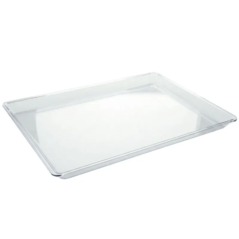 Bandeja Lux Rectangular de plástico transparente reutilizable de 37 x 27cm. Fabricada en poliestireno alimentario. Perfecta para presentación de todo tipo de alimentos, tartas, dulces, salados, carnes, pescados, etc. Dale un toque de glamour a tu mesa.
