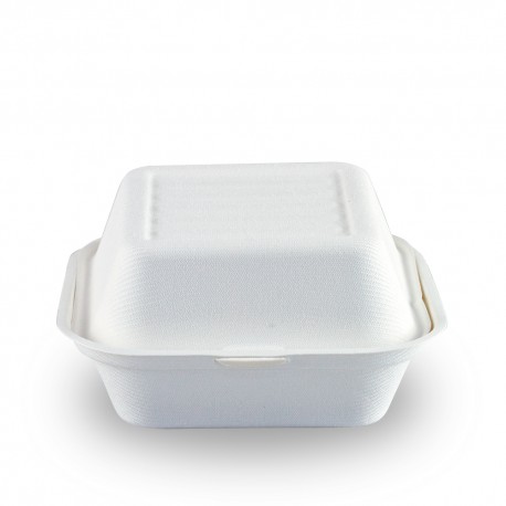 - Envase para hamburguesas biodegradable. Este modelo está fabricado con caña de azúcar y son perfectos como envases de usar y tirar pues no contaminan.