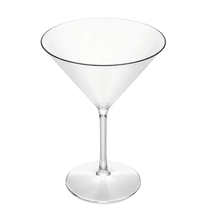 Copas Reutilizables para Coctel y Martini, de plástico Policarbonato transparentes con capacidad para 300ml. Fabricadas en Tritán efecto cristal y prácticamente irrompibles. Aptas para el lavavajillas. Unidad de venta en cajas de 4 unidades.