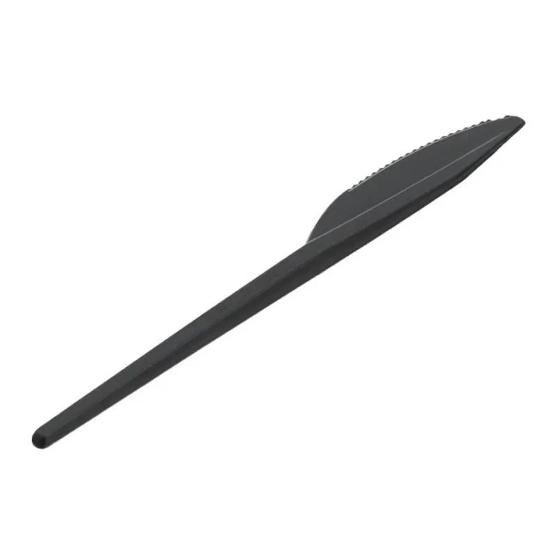 Estos cuchillos desechables son aptos para alimentos fríos y calientes, ofreciendo resistencia y durabilidad. Su diseño en color negro añade un toque moderno y profesional, ideal tanto para mesas formales como informales. Con una longitud de 18 cm, son cómodos de manejar y funcionales para cualquier tipo de comida.