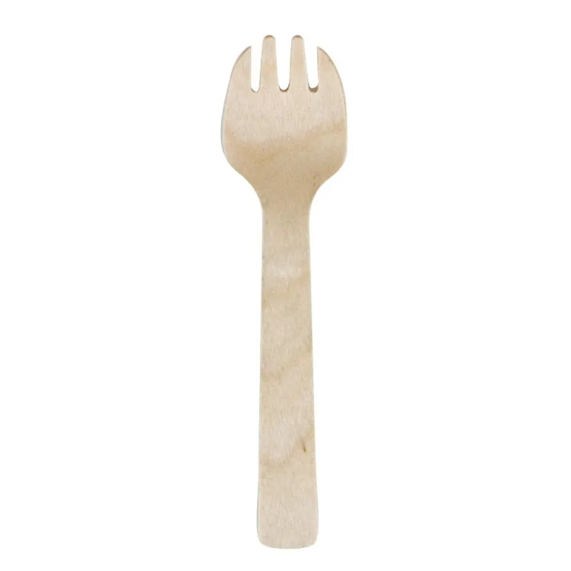 Mini Tenedores de madera 10,5cm desechables, la mejor elección para disfrutar de tus mini tenedores desechables ecológicos, respetando el medio ambiente y la naturaleza. Unidad de venta en paquetes de 100 unidades o cajas de 3.000 unidades.