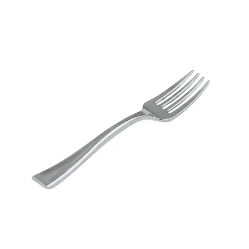 Estos mini tenedores de plástico metalizados Suprem son el complemento ideal para eventos y celebraciones que requieren un toque de distinción. Con su diseño sofisticado en color plata metalizado y su tamaño compacto, son perfectos para presentaciones de catering, fiestas, navidades y otras ocasiones especiales. Fabricados en poliestireno alimentario de alta calidad, ofrecen un acabado elegante y una gran funcionalidad que los hace destacar en cualquier mesa.