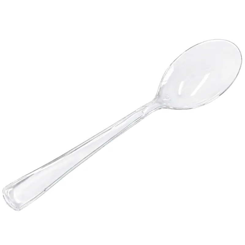 Ideales para ocasiones como navidades, cumpleaños, fiestas y catering, estas cucharas reutilizables de plástico tienen un diseño transparente que les otorga un aspecto limpio y sofisticado, adaptándose fácilmente a cualquier estilo de presentación o decoración.