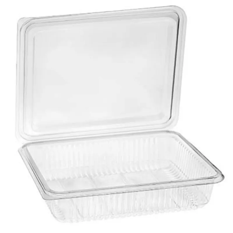 Los envases de plástico grandes para loncheados con tapa transparentes son la solución perfecta para envasar, almacenar y transportar alimentos frescos o preparados de forma segura, higiénica y atractiva. Fabricados en PET (Polietileno Tereftalato) de alta calidad, estos envases destacan por su resistencia, ligereza y transparencia total, permitiendo una visibilidad completa del contenido. Su diseño con tapa de bisagra proporciona un cierre seguro y hermético, preservando la frescura de los alimentos y evitando fugas o derrames durante su transporte.