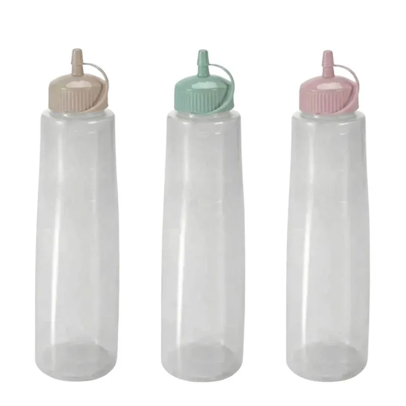 Bote dosificador de plástico graduado, ideal para salsas, decora los platos con delicadeza y elegancia.