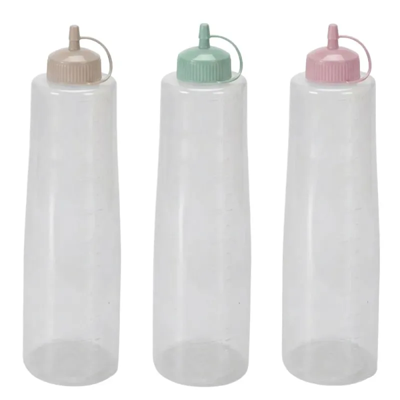 Bote dosificador de plástico graduado, ideal para salsas, decora los platos con delicadeza y elegancia.