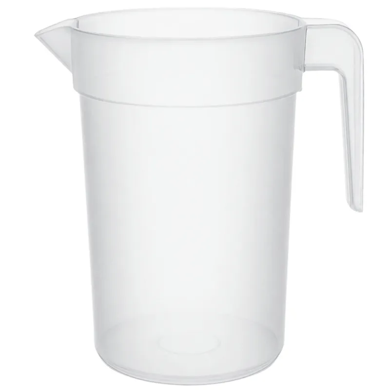 Jarras de plástico con capacidad para 1000ml transparentes. Fabricadas en polipropileno alimentario dandole una alta resistencia. Unidad de venta en paquetes de 8 unidades o cajas de 120 Uds distribuidas en 15 paquetes de 8 unidades.