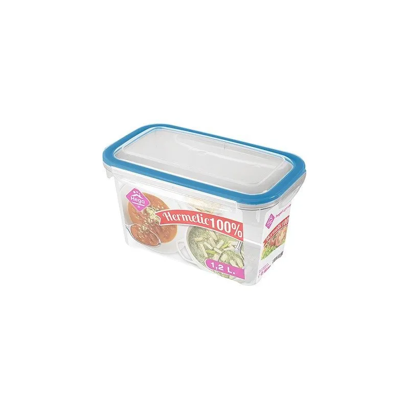 Fiambrera de plástico rectangular con cierre hermético, ideal para guadar cualquier alimento que quieras conservar en perfecto estado y durante más tiempo, dipone de una capacidad de 1200ml.