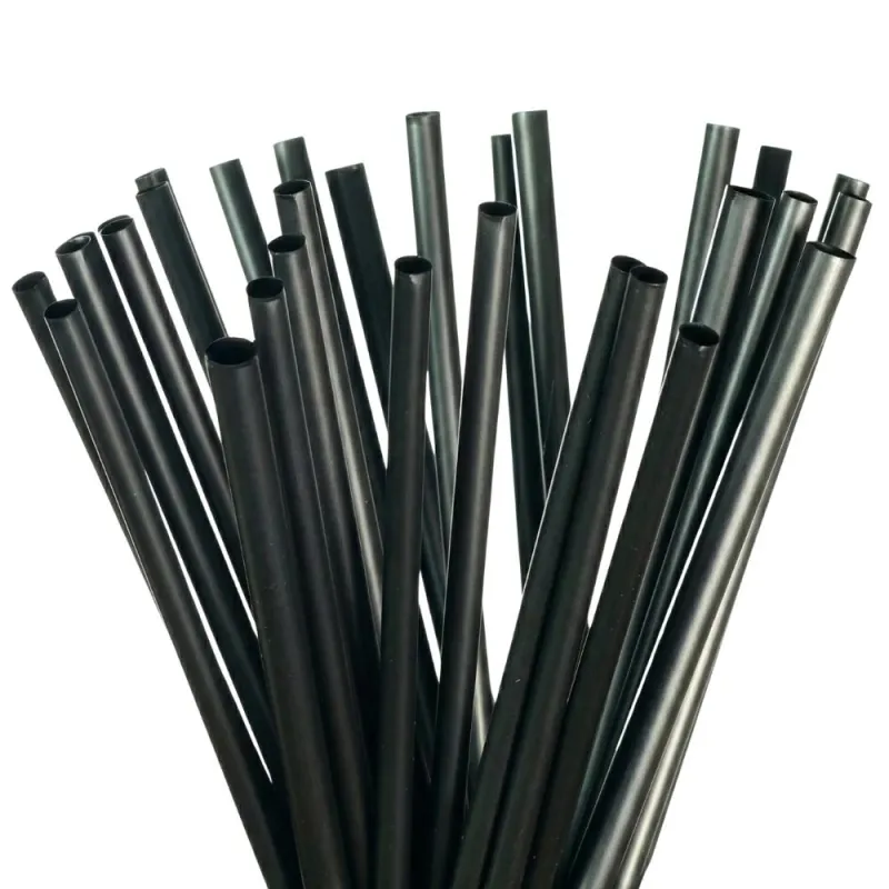Pajitas de plástico PP negras de 20cm y Ø6mm rectas para bebidas. Fabricadas en PP (Polipropileno) de uso alimentario, estas cañitas de plástico son reutilizables para 10 lavados. Se pueden utilizar tanto en bebidas calientes y frías. Unidad de venta en paquetes de 500 unidades o cajas de 6.000 Uds.