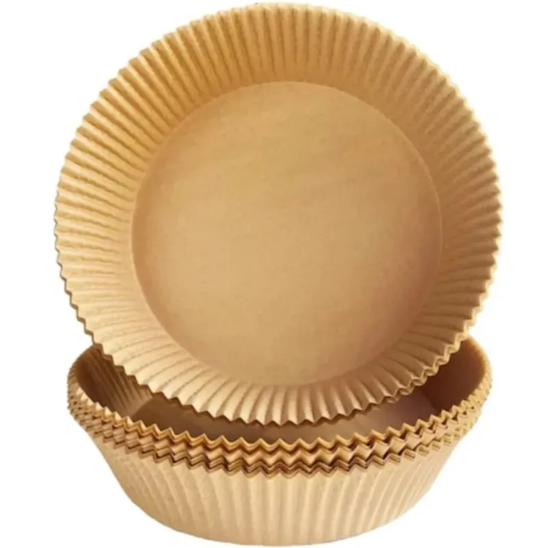 Papel para Freidora de Aire Redondo de Ø20cm y 4,5cm de altura, fabricado en papel siliconado alimentario kraft. Ideal para AirFryer de 3,5/5 Litros cuadradas. Temperatura de uso máxima de 220º durante 20 minutos, apto para Freidoras de Aire, Horno, Microondas y alimentos como Carne, Pescado, Fritos y Repostería.