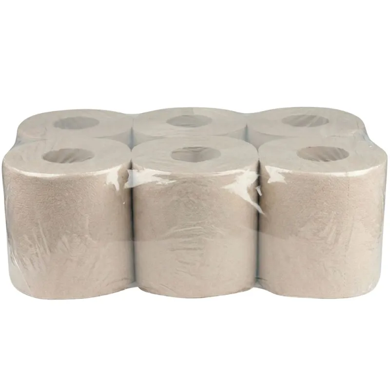 Formato de venta en paquetes de 6 rollos de papel secamanos.