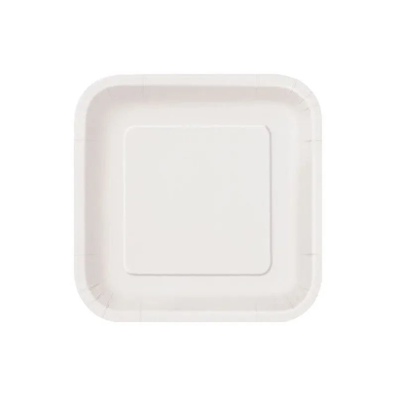 Platos de cartón blanco biodegradables cuadrados de 18 cm. Fabricados en cartón libre de plástico, son biodegradables, 100% reciclables y la mejor elección para disfrutar de tus platos desechables ecológicos, respetando el medio ambiente y la naturaleza. Aptos para alimentos secos y con bajo contenido graso. Unidad de venta en paquetes de 50 unidades o cajas de 500 unidades.