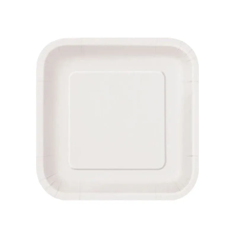 Platos biodegradables de cartón blanco cuadrados de 20 cm. Fabricados en cartón libre de plástico, son biodegradables, 100% reciclables y la mejor elección para disfrutar de tus platos desechables ecológicos, respetando el medio ambiente y la naturaleza. Aptos para alimentos secos y con bajo contenido graso. Unidad de venta en paquetes de 50 unidades o cajas de 500 unidades.