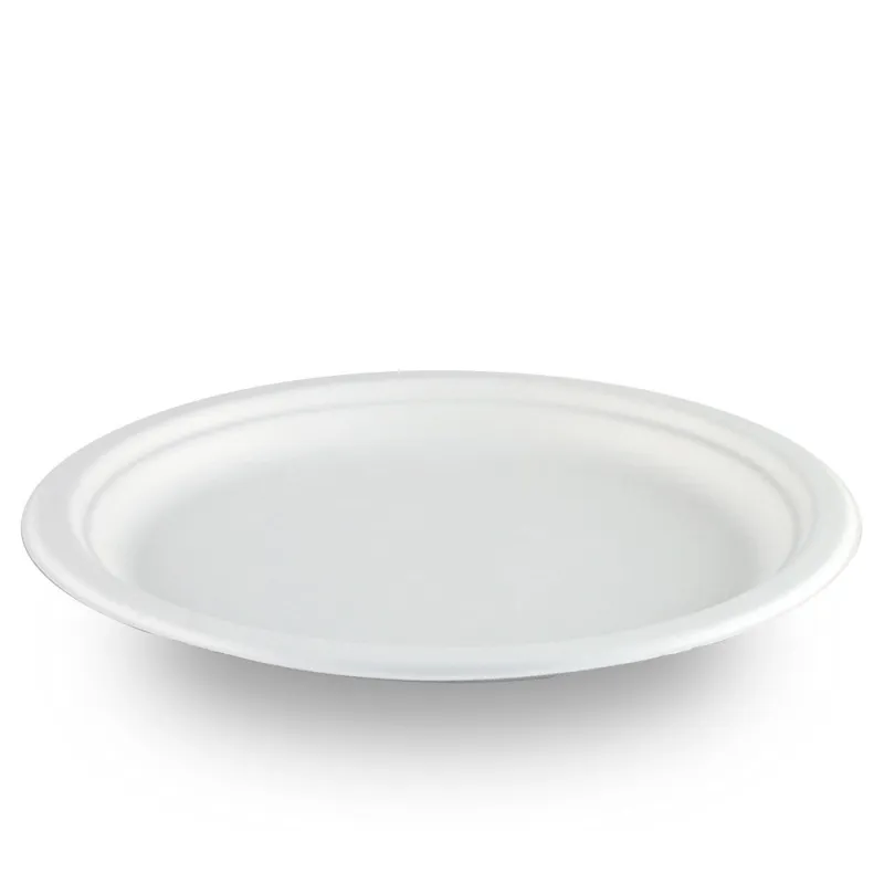 Platos Biodegradables de Caña de Azúcar Redondos de 30cm. Estos Platos Ecológicos son 100% Compostables y están fabricados con fibra de caña de azúcar. Son perfectos para celebraciones, hostelería, catering y aptos para comida caliente y fría. Al tratarse de platos compostables, una vez que disfrutemos de ellos los podemos depositar en el cubo marrón orgánico y estaremos contribuyendo a cuidar el medio ambiente. Aptos para microondas. Unidad de venta en paquetes de 25 unidades o cajas de 250 Uds.