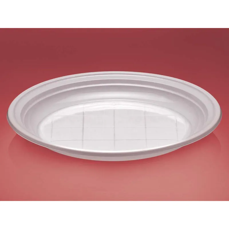 Nuestros platos de plástico blanco son una solución cómoda y práctica para todo tipo de celebraciones, eventos o servicios de hostelería. Están fabricados en poliestireno alimentario (PS), un material ligero y resistente que permite servir comidas, aperitivos o raciones con total comodidad. Su acabado en color blanco y su diseño ofrecen una presentación limpia y elegante que combina fácilmente con cualquier tipo de mesa.