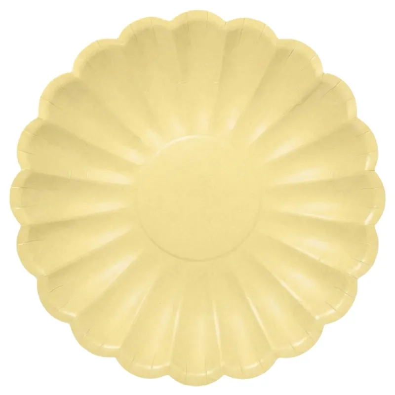 Platos de cartón desechables elegantes con forma floral en color amarillo pastel de 23cm. Estos platos elegantes de papel son ideales para decorar tu fiesta, celebración o cualquier evento y comida donde quieras destacar con originalidad. Unidad de venta en paquetes de 6 unidades.