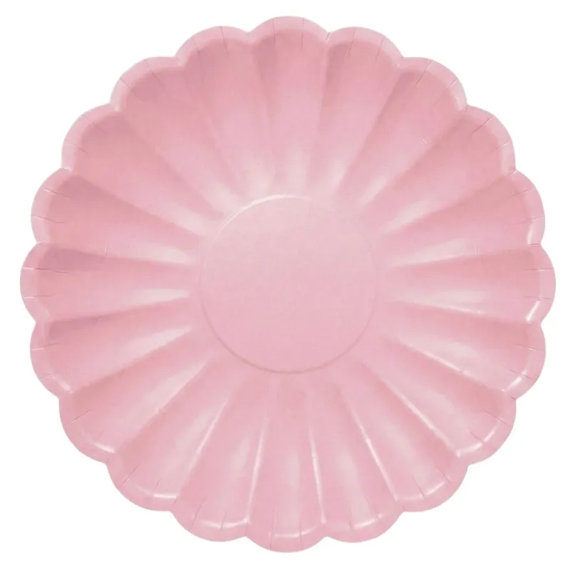 Platos de cartón desechables elegantes con forma floral en color rosa pastel de 23cm. Estos platos elegantes de papel son ideales para decorar tu fiesta, celebración o cualquier evento y comida donde quieras destacar con originalidad. Unidad de venta en paquetes de 6 unidades.