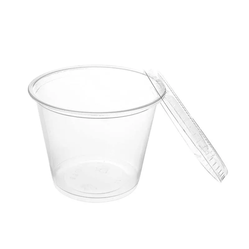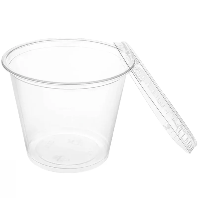 Tarrina salsera de plástico con tapa desechables con capacidad para 165cc transparentes. Fabricadas en Polipropileno las tarrinas y PET las tapas. Unidad de venta en paquetes de 6 unidades o cajas de 288 Uds distribuidas en 48 paquetes de 6 unidades.