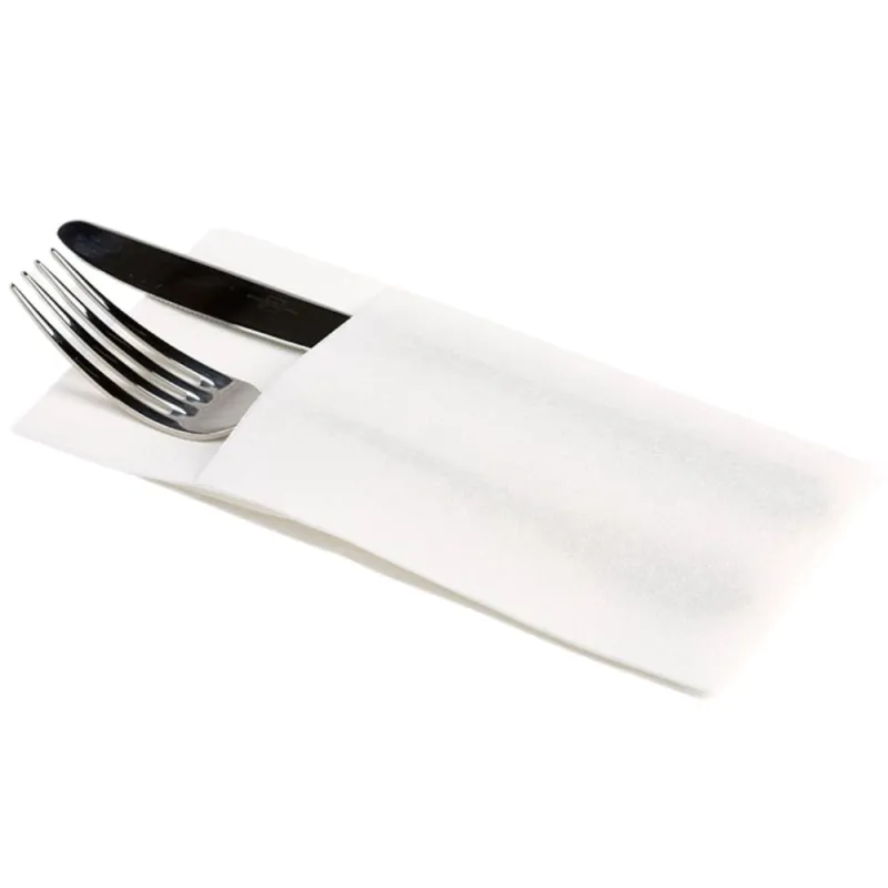 Fabricadas en celulosa de doble capa de alta calidad, estas servilletas canguro destacan por su suavidad, resistencia y gran capacidad de absorción. Su tecnología punta-punta refuerza la estructura de la servilleta, garantizando mayor durabilidad y resistencia al uso. Con unas medidas de 40 x 40 cm, estas servilletas de papel ofrecen una gran superficie de uso y permiten insertar los cubiertos en su interior, facilitando la organización de la mesa y mejorando la experiencia del cliente. Su color blanco clásico encaja perfectamente en cualquier tipo de evento o negocio de hostelería, aportando limpieza y frescura a la presentación de la mesa.