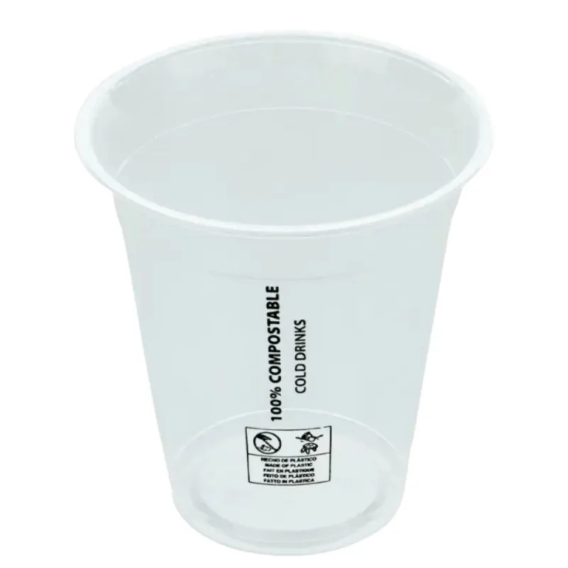 Vasos biodegradables transparentes con una capacidad de 220ml, fabricados en PLA (Polímero de Almidón de Maíz) también llamado plástico ecológico o plástico biodegradable, este material es 100% Compostable, la mejor opción para disfrutar de tus vasos desechables ecológicos y respetar el medio ambiente y la naturaleza. Unidad de venta en paquetes de 50 unidades o cajas de 1.250 unidades. Aptos para bebidas que no superen los 40º.
