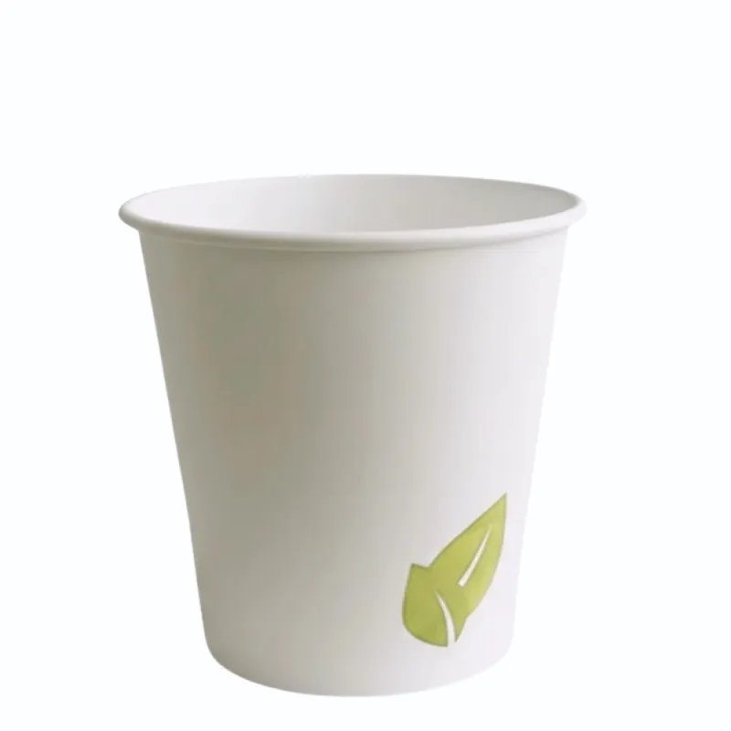 Vasos de cartón color blanco con diseño de hojas con una capacidad de 120ml, fabricados en papel. También llamados vasos de papel o vasos de cartón café, este vaso es 100% Reciclable, la mejor opción para disfrutar de tus vasos para café desechables. Unidad de venta en paquetes de 50 unidades o cajas de 1.000 unidades. Unidad de venta en paquetes de 50 unidades o cajas de 1.000 unidades. Vasos compatibles con la tapa drink de Ø6,2cm.