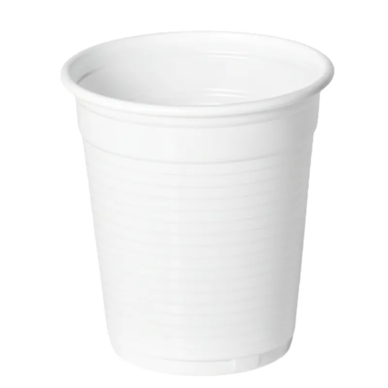 Vasos de plástico blancos desechables con capacidad para 160ml. Fabricados en polipropileno alimentario dandole una flexibilidad prácticamente irrompible. Unidad de venta en paquetes de 100 unidades o cajas de 3.000 Uds distribuidas en 30 paquetes de 100 unidades.